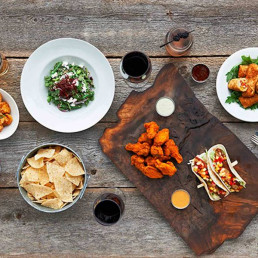 The menu also features a selection of Chicken Classics, Ribs, Burgers, Handhelds, Mains, and Gluten-Free options to cater to different dietary preferences. The HellofaBurger and Basa Fish Taco are customer favorites that never disappoint.